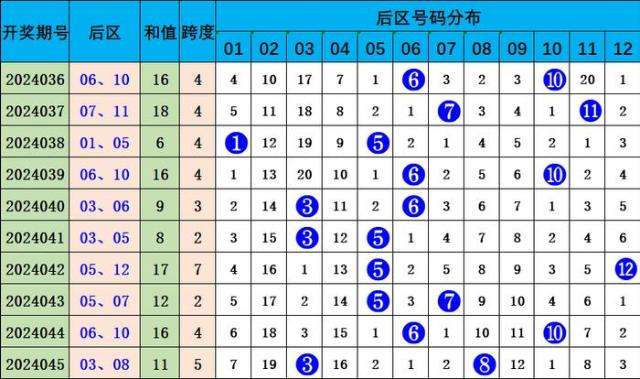 上期前区三区比为2:1:2,一区(1-12)开出2个号码;二区(13-24)开出1个号码,三区(25-35)开出2个号码。前区近10期三区号码比为18:19:13,综合分析推荐本期区间比为1:2:2。