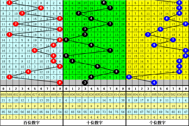 百位走势:近10期在1-9之间出号,跨度为9点,出号比较分散,上期奖号为1,下降3点,本期看好该位上升。另外近10期该位大小比为7:3,大号热出,本期防大号再出,关注号码9。