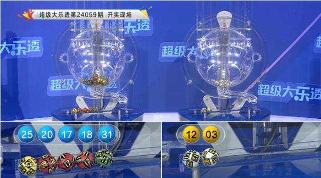 体彩大乐透第24059期奖号为:17 18 20 25 31+03 12,其中前区奖号012路比为1:2:2,大小比为4:1,奇偶比为3:2,没有同尾奖号。