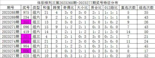 开奖公告:体彩排列三第2023277期开出奖号:028。组六,有重号:0,奇偶比0:3,大小比1:2,012比1:0:2,和值10,跨度8。