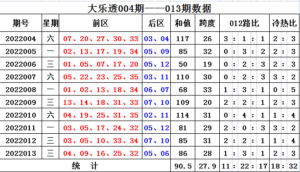 上期回顾,大乐透第2022013期开奖,本期奖号:前区04 09 16 25 32;后区05 06,当期前区号码大小比为2:3,三区比2:1:2,奇偶比为2:3。前区未开出连号,未开出重号。