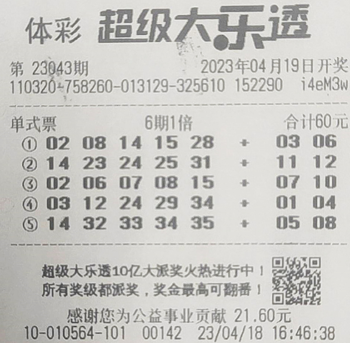 彩民守号擒大乐透1000万 遗憾没追加错失派奖奖金