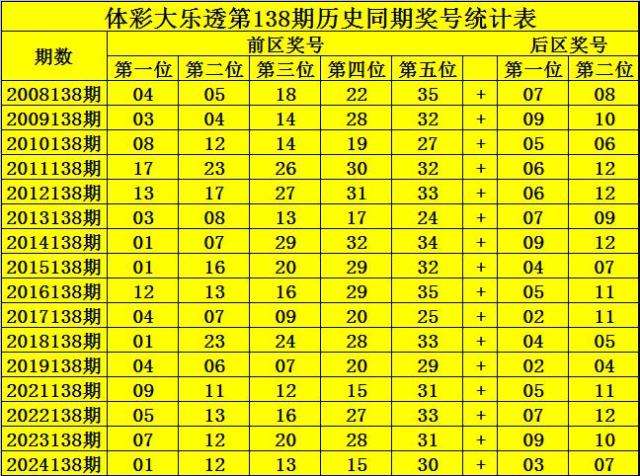 钟山体彩大乐透第2024138期历史同期定位升重降号码分析: