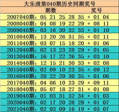 三、连号分析:在第040期历史同期奖号中只有8期出现了连号,分布在第2009040期、第2012040期、第2013040期、第2015040期、第2016040期、第2019040期、第2020040期、第2021040期,出现比例为53%,本期预计连号继续走冷,排除连号。