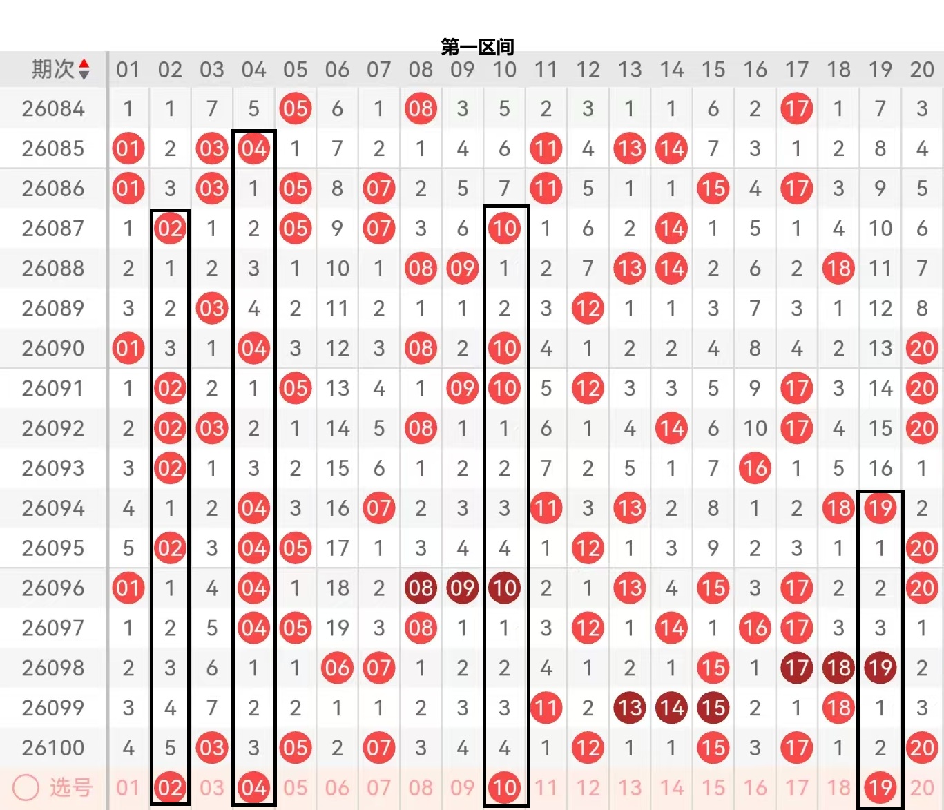 上期第一区间开出(03 05 07 12 15 17 20)七个号码球。上期一区间七个号码球在一区间落位,区间走出热态七码出号区间走出温态趋势,一区间前端龙头03-05-07三奇连号码球落位,那么通过分析研判从区间的落位趋势去看一区间整体区间落位号码分布在区间的前后两端。那么本期我们在一区间进行研判时一定要考虑后端号码的回补落位,通过区间的走势特点去研判本期的走势,后端独码20号码球开出。我们要注意区间冷态号码球的回补开出,那么本期我们要注意区间的走势端号码趋势转换的可能,因此我们要谨慎操作防止区间走出回补态更为合理。