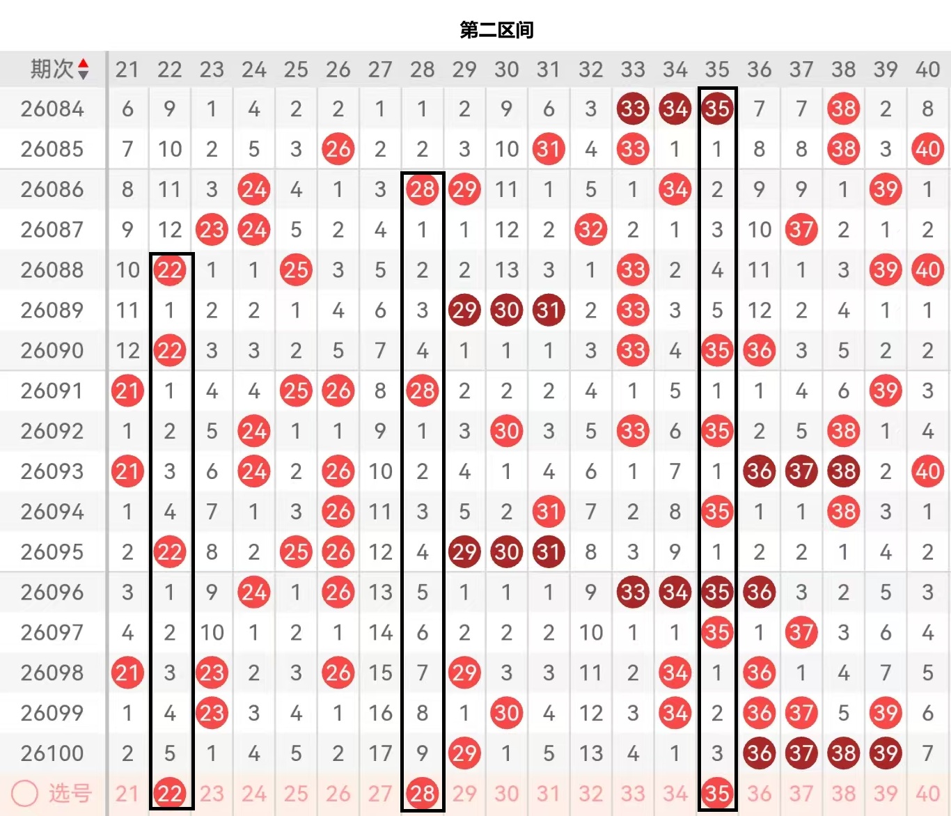 上期第二区间开出了(29 36 37 38 39)五个号码球,上期热态五码在二区间落位。区间号码走出热态五码落位。那么通过对上期二区间落位号码进行研判我们可以发现整个区间号码走出区域落位,区间前端开出独码29号码球,区间后端36-37-38-39四连号码球开出。那么通过对二区间号码的落位趋势进行分析可以看到二区间的走势在本期落位后趋势向温态回调的可能性最大。那么本期我们在二区间进行操作时一定要加强对二区间形态号码球的研判,所以我们在二区间进行操作时一定要考虑区间热态号码更为合理。