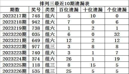 上期回顾:排列三第2023226期奖号:535,组三,直选遗漏总值为35期。