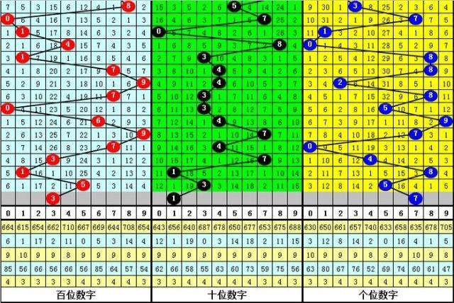 十位:上期为3,近10期012路比为3:7:0,其中0路号遗漏5期出现,本期排除0路号,注意1路号出现,关注1。