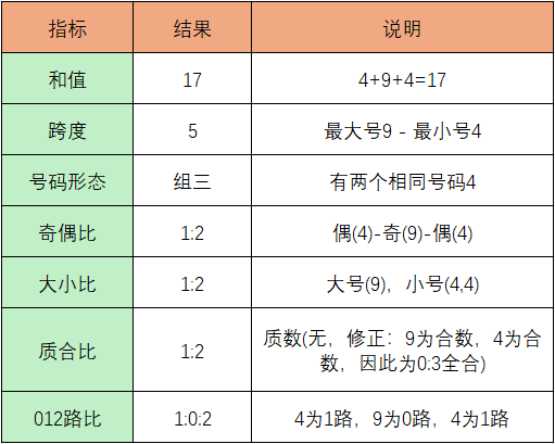 质合分析:近30期质数号码(1,2,3,5,7)共出现81次,合数号码(0,4,6,8,9)共出现69次。质合数总体比例为 54.0% : 46.0%,质数优势依然稳固。近10期质合比为20:10,质数极度强势;但最近一期开出罕见的0:3全合组合,信号强烈。全合数的出现可能是趋势转换的明确信号。本期质合比 可能延续合数回暖的态势,重点关注 1:2,防 0:3 全合再次出现。