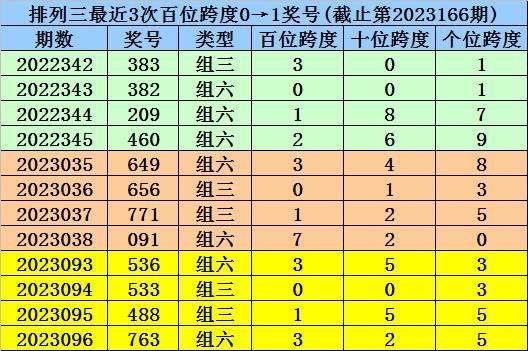 第2023093-第2023095期奖号:536、533、488,其下期奖号为:763,首位号码跨度为3;