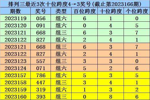 第2023157-第2023159期奖号:786、447、319,其下期奖号为:393,中位号码跨度为0;