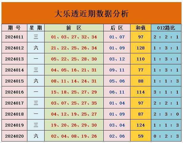 上期回顾:大乐透第2024020期奖号:前区02、04、08、19、26,后区02、06,前区奖号和值为59,三区比为3:1:1,后区开出小小组合02、06