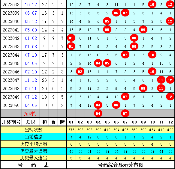 前区第三位:上期开出号码14,出现在第二区,与前期对比下降8个点位,本期预计该位继续走小,再次关注第二区号码,注意号码12。