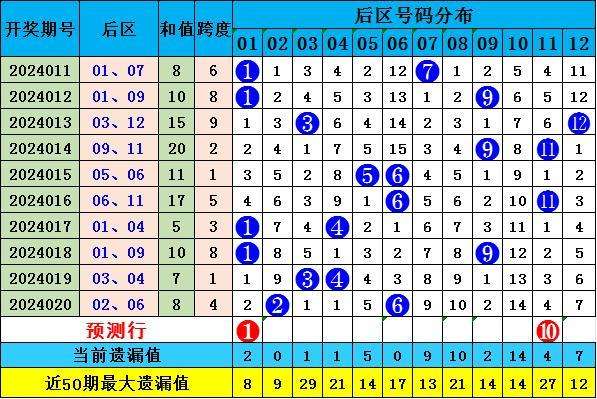 本期看好奇偶组合后区开出,参考后区开出号码:01 10。