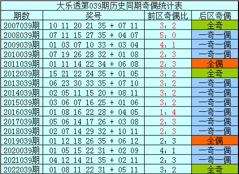 后区分析:在第039期历史同期开奖中,后区奖号奇偶比为17:15,最近5年同期后区奇偶走势为:一奇一偶、全偶、一奇一偶、一奇一偶、全奇,今年同期预计奇偶号码同出,关注两码08、11。