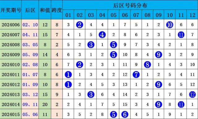 上期后区号码为05号和06号,为小小奇偶组合,近10期奇偶比13:7,奇号出号较热,预计本期小大偶奇组合出现。本期推荐02 11。