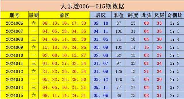 大乐透上期奖号为:前区08、11、14、24、31,后区05、06;龙头08,凤尾31,和值88,跨度23,奇偶比为2:3。