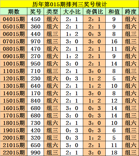历年第015期奖号中:组三开出8次,组六开出11次。组三、组六基本相当,本期关注组六。