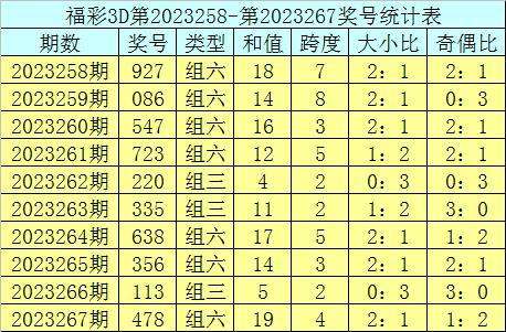 上期回顾:福利彩票3D第2023267期奖号为478。