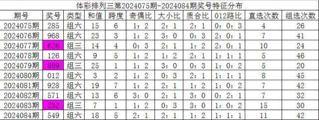 开奖公告:体彩排列三第2024084期开出奖号:549。组六,无重号,奇偶比2:1,大小比2:1,012比1:1:1,和值18,跨度5。