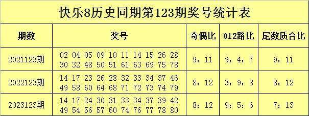 福彩快乐8第2024122期开出奖号:02 03 07 09 10 12 18 27 37 39 45 46 48 52 54 64 67 70 74 78,其中奖号奇偶比为8:12,012路比为10:8:2,尾数质合比为9:11。