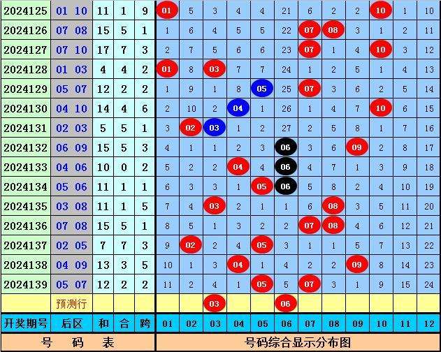 后区分析:上期后区开出号码05和07,在最近15期开奖中,后区奖号奇偶比为16:14,大小比为13:17,本期后区关注一奇一偶组合和全小组合,精选两码03和06。
