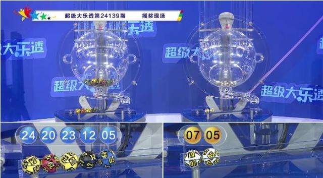 体彩大乐透第24139期奖号开出:05 12 20 23 24+05 07,前区奖号奇偶比为2:3,五区比为1:1:1:2:0,后区奖号奇偶比为2:0,大小比为1:1。