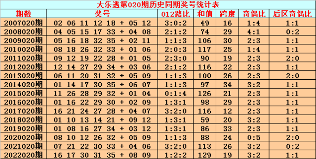 综上所述,大乐透第2023020期前区012路比参考0:2:3。