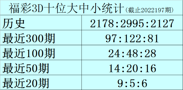 198期黑天鹅福彩3D预测奖号:大中小号遗漏分析