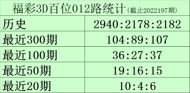 百位推荐:百位最近20期号码012路比为10:4:6,目前0路号码遗漏1期,1路号码遗漏4期,2路号码遗漏0期,另外0-9号码遗漏期数分别为: