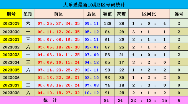 039期星哥大乐透预测奖号:前区三区推荐