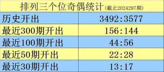 上期回顾:排列三2024297期奖号为037,类型为组六,奇偶比为2:1,大小比为1:2,和值为10。