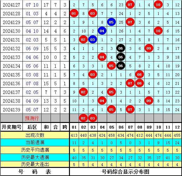 上期开奖:体彩大乐透第2024139期开奖号码为:05、12、20、23、24+05、07。前区五区比为1:1:1:2:0,和值为84,首尾间距为19,奇偶比为2:3,开出2个重号:05 20。后区号码和值为12,跨度为2。