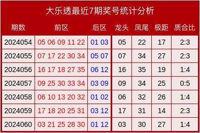 后区分析:近7期后区奖号质合比为9:5,质数走势较热,上期开出后区号码为01、12,属于质合数,本期预测后区号码为03、11。