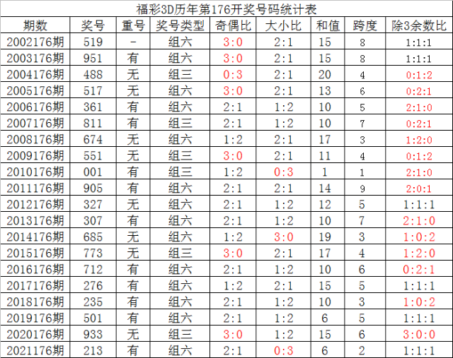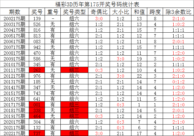 176期夏姐福彩3D预测奖号:历史同期分析