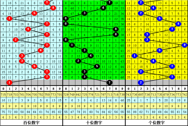 在历史开奖中,单选号码1开出11次,号码5开出9次,号码3、7开出8次,号码0、2开出5次,号码6、8、9开出4次,号码4开出2次,本期双胆参考:17。