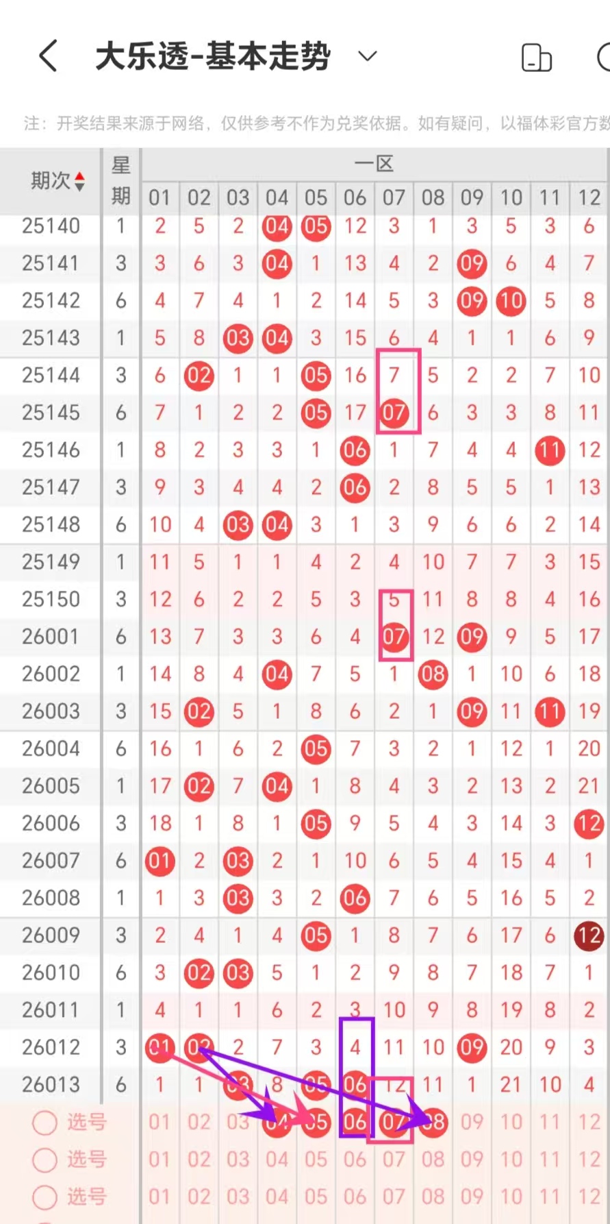 各位兄弟姐妹们大家好,我是nice,我喜欢研究数字的走势规律以及数据分析,通过同期次、同日期、同星期奖号等等出号规律进行杀号和做数据条件,红球杀号的准确率和稳定度都相当不错,首先通过上面的模块进行杀号可以做到杀红球12枚,然后将杀号带入到数据条件中进行选胆,这种方法屡试不爽帮助自己排除很多不必要的号码,将红球选号的数量控制在8-12枚,结合红球杀号带入到数据条件中选出的胆码,做胆拖组合控制成本