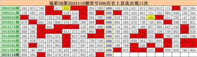上期回顾:福彩3D第2024110期开出奖号506。