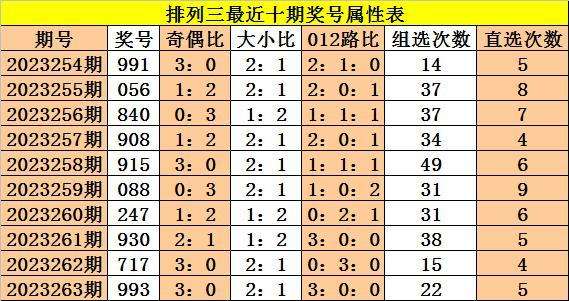 上期回顾:体彩排列三第2023263期奖号:993,奇偶比3:0,大小比2:1,012比3:0:0。