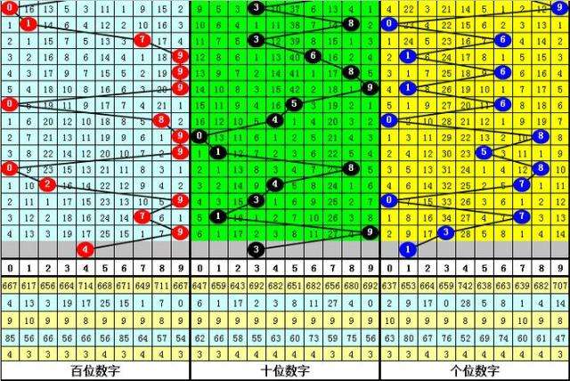 百位走势:近10期在0-9之间出号,跨度为10点,出号比较分散,上期奖号为9,上升2点,本期预计该位走小。另外近10期该位大小比为7:3,小号较冷,本期防小号回补,关注号码4。