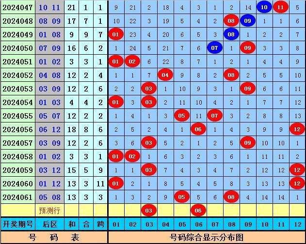 后区奖号分析:上期后区奖号为05+08,遗漏期数为5期和8期,目前后区号码01-12分别遗漏:1期、3期、2期、9期、0期、5期、6期、0期、4期、14期、14期、1期,本期后区注意号码01、03、05、06、11,两码关注03、06。