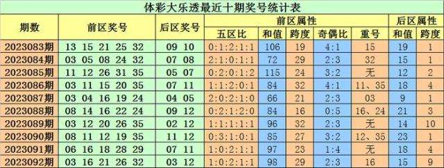 上期开奖:体彩大乐透第2023092期开奖号码为:03、16、21、26、32+03、12。前区五区比为1:0:2:1:1,和值为98,首尾间距为29,奇偶比为2:3,开出1个重号:16。后区号码和值为15,跨度为9。