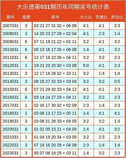 大乐透历年同期奖号数据统计图表