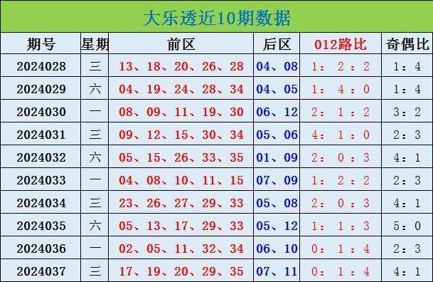大乐透第24037期开出奖号:17 19 20 29 35+07 11;其中前区012路比为0:1:4,奇偶比为4:1。