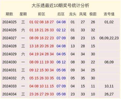 其中前区的龙头号码为23,凤尾号码为33,极距为10,开出1组连号26,27。