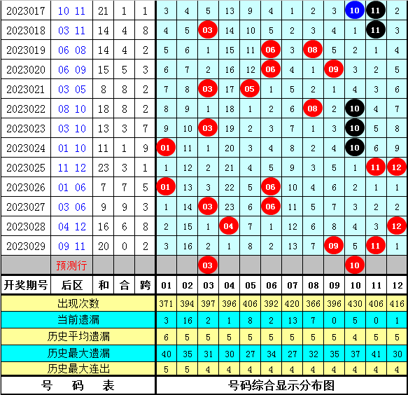2、历史同期开奖中前区第一区开出10个奖号,断区8次;第二区开出15个奖号,断区7次;第三区开出17个奖号,断区4次;第四区开出16个奖号,断区5次;第五区开出22个奖号,断区1次。本期注意断区现象;