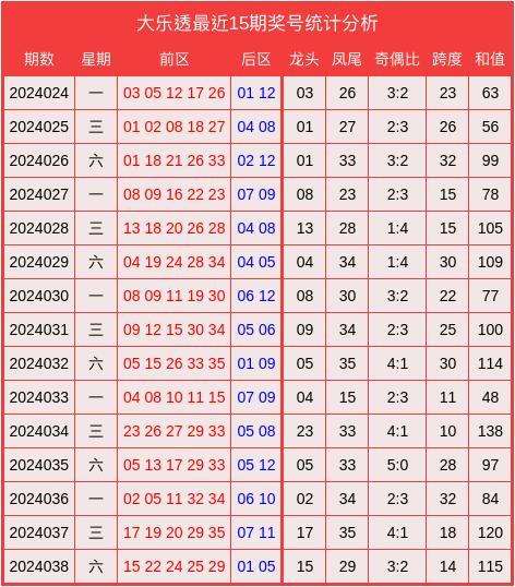 上期回顾:大乐透2024038期开出奖号:前区15、22、24、25、29,后区01、05。