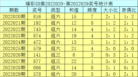 开奖回顾:福彩3D第2022029期奖号:578。