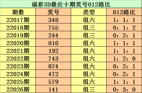 开奖回顾:第2022026期3D奖号为141。形态:组三,奇偶比2:1,大小比0:3,012路比为0:3:0。