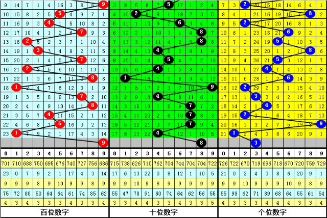 百位推荐:近10期出现1个0路号、5个1路号、4个2路号,1路号大热,0路号走势低迷。本期注意0路号,关注号码3、9。